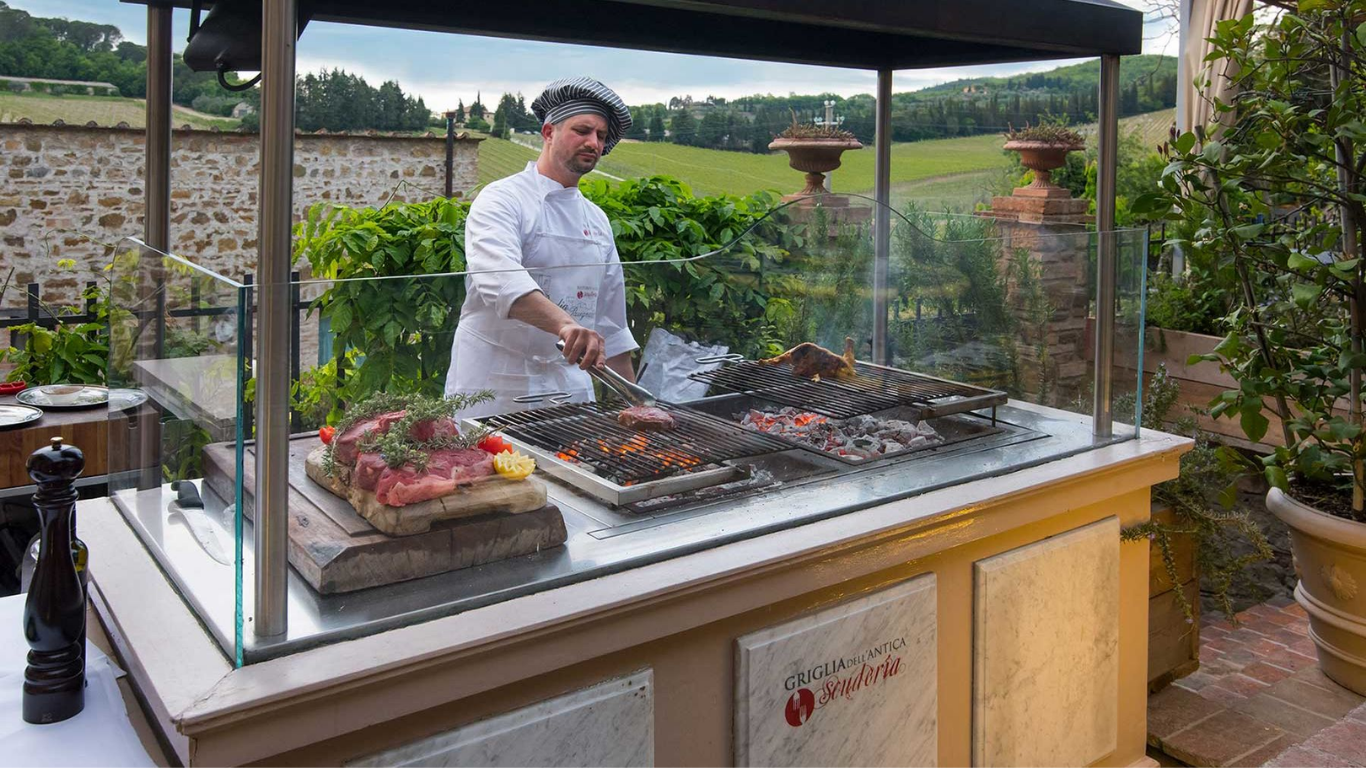 A cozinha segue o mesmo princípio. Não corre, não segue modismos. Respeita. Cada prato nasce de um equilíbrio delicado entre tradição e criatividade, entre gestos antigos e sensibilidade contemporânea. A cozinha toscana não é reinventada, mas interpretada com cuidado. As estações comandam o menu, que se renova para valorizar o melhor momento de cada ingrediente. Tudo tem origem conhecida, história, identidade. Porque a verdadeira qualidade nasce das relações.