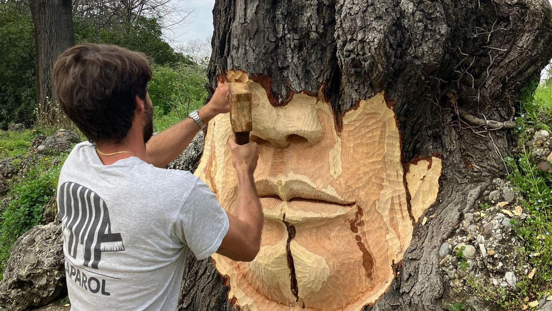 Em Roma, já são mais de sessenta. Mas é na Sicília, em Partinico, que está nascendo algo diferente: um parque inteiro, 35 esculturas criadas a partir de troncos locais. Não uma instalação. Um ecossistema artístico.