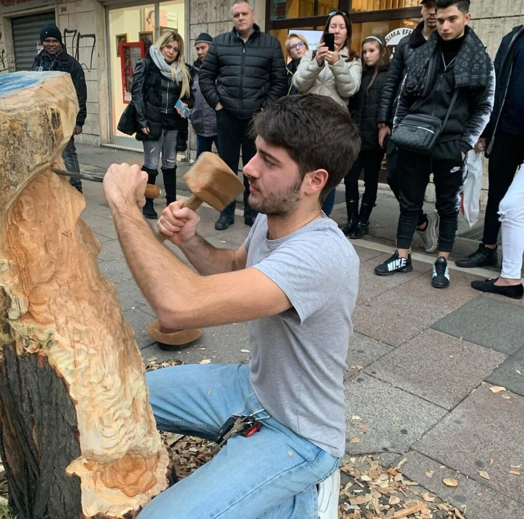 Há algo profundamente perturbador e, ao mesmo tempo, necessário em olhar para um tronco cortado e não enxergar o fim. Nem a morte, nem o descarte. Mas um começo. É exatamente nesse ponto que se posiciona o olhar de Andrea Gandini, romano, nascido em 1997, alguém que decidiu fazer algo simples e radical ao mesmo tempo: devolver dignidade àquilo que a cidade abandona.