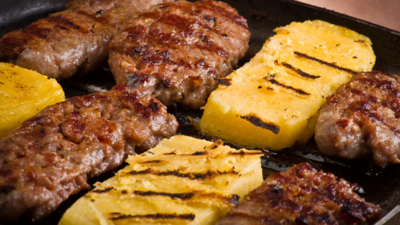 Geralmente moldado em discos achatados, quase como hambúrgueres rústicos, o pastin vai para a grelha ou para a frigideira até formar uma crosta dourada por fora, mantendo o interior macio e suculento.