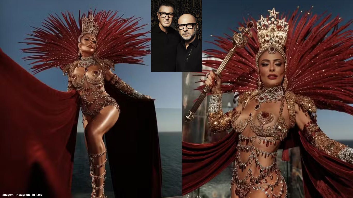 Quando a alta moda italiana encontra a energia visceral do Carnaval carioca, o resultado é puro espetáculo. A maison Dolce & Gabbana assinou a fantasia usada por Juliana Paes no desfile da escola de samba Unidos do Viradouro, selando um diálogo criativo entre o Mediterrâneo e o Brasil.