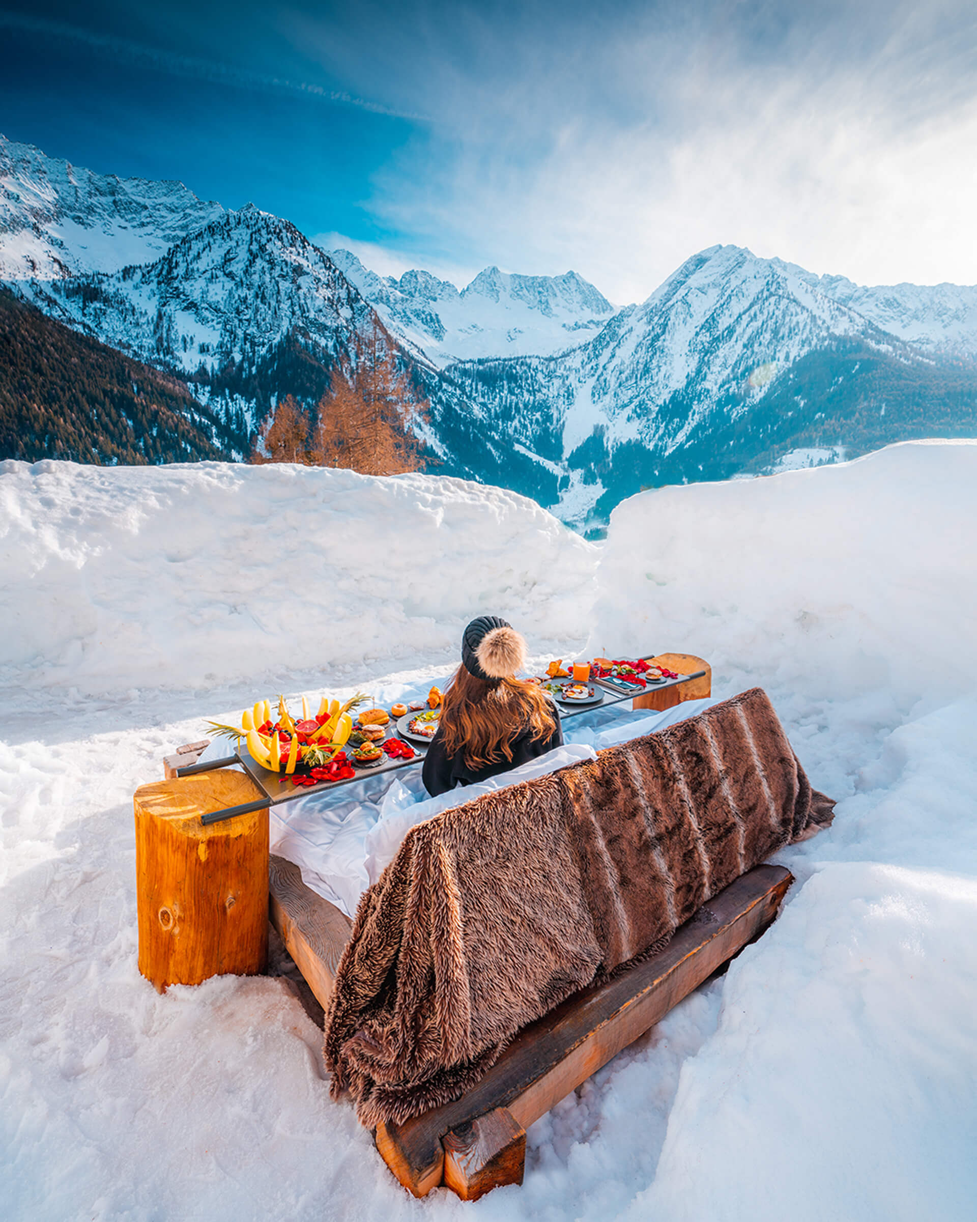 Ainda assim, reduzir tudo às redes sociais seria injusto. Porque a beleza aqui não é apenas estética; é também gastronômica. São quatro restaurantes, quatro experiências que contam o território, a modernidade e as raízes. Do Bistrot informal ao Contemporâneo gourmet, do Tipico trentino ao Dolce Vita italiano, cada prato é uma viagem paralela à das montanhas.