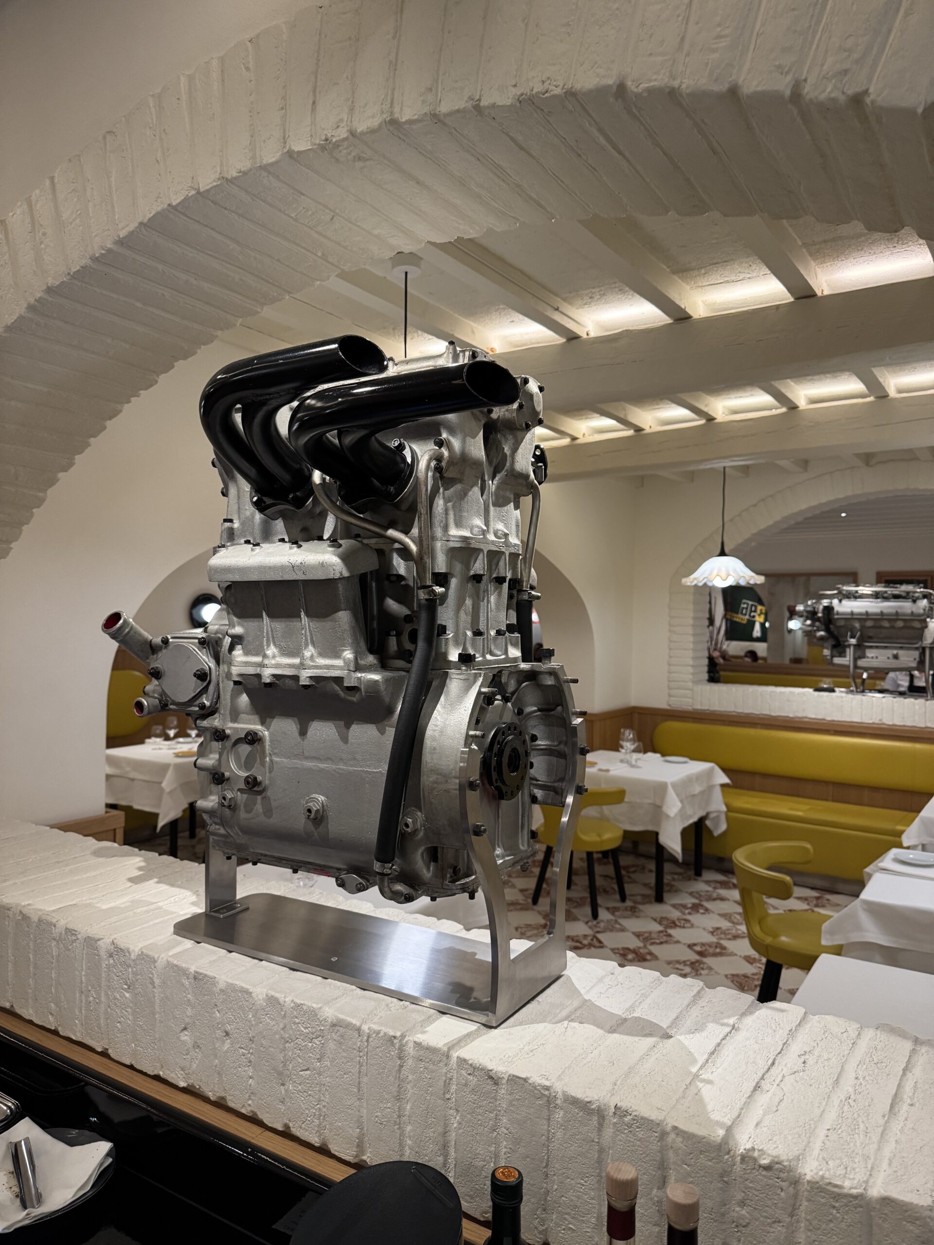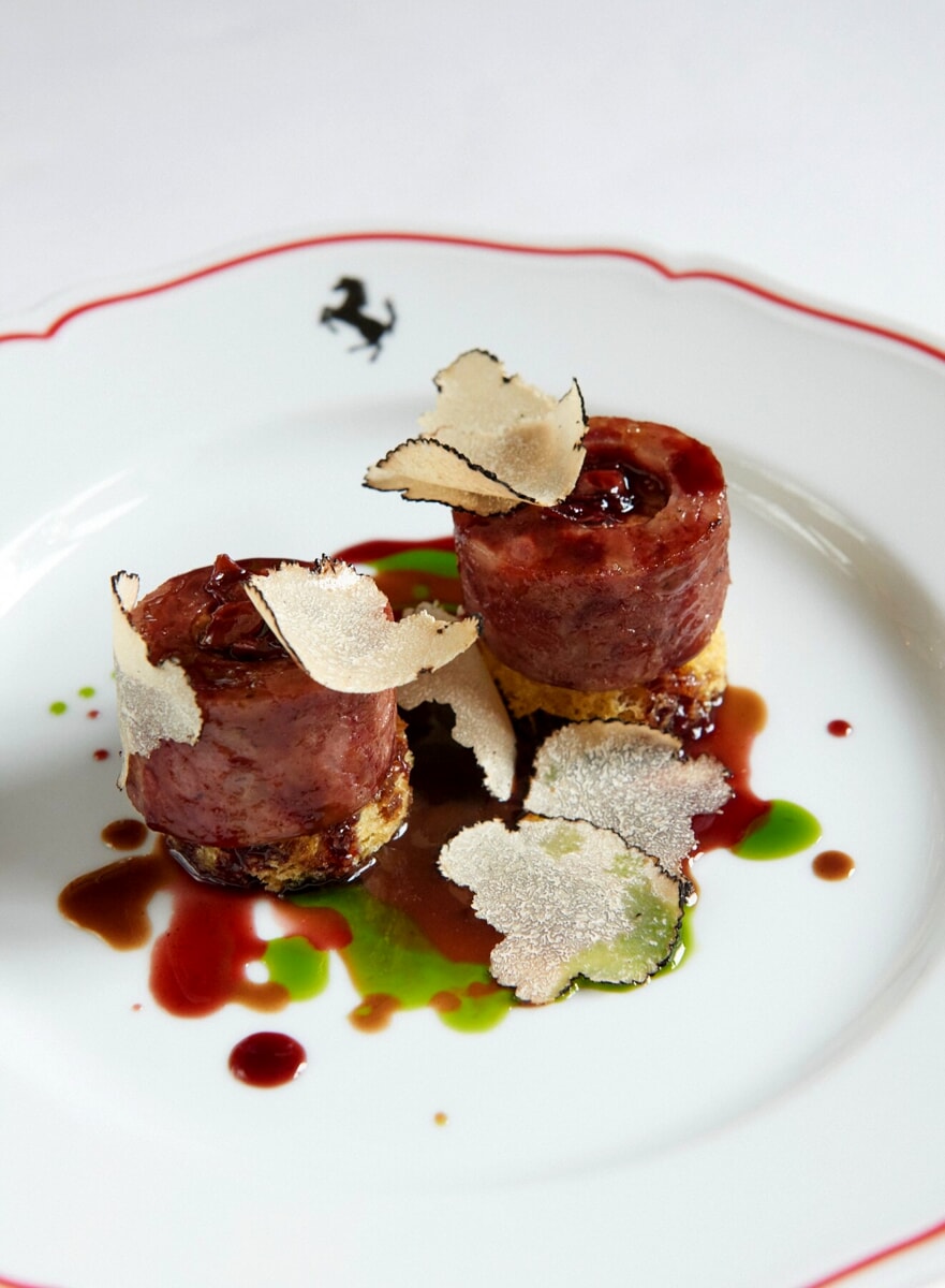 Cada prato é uma história: tortellini, ragù, queijos, massas frescas, revisitados por chefs que olham para o passado sem deixar de projetar inovação. A decoração reflete a alma Ferrari: paredes cobertas de arquivos fotográficos, detalhes de época, salas privadas dedicadas ao universo GT e Racing. Cada garfada é acompanhada por um cenário onde o vermelho, o metal e o ronco dos motores ressoam mesmo fora das pistas.