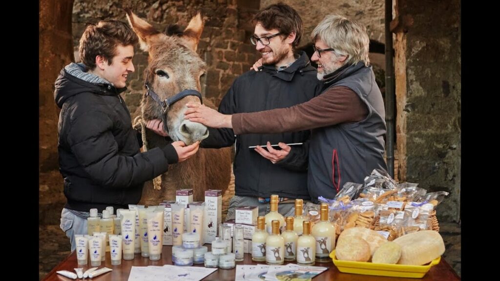 Hoje são mais de quarenta jumentos distribuídos nas terras da família, mas apenas uma parte produz leite. E também aqui, nada é forçado. A lógica é oposta à industrial: o potro permanece sempre com a mãe, é ele quem estimula naturalmente a produção. O homem não impõe, observa. Não maximiza, acompanha. O resultado? Quantidades limitadas. Mas qualidade extrema. E, sobretudo, uma narrativa credível.