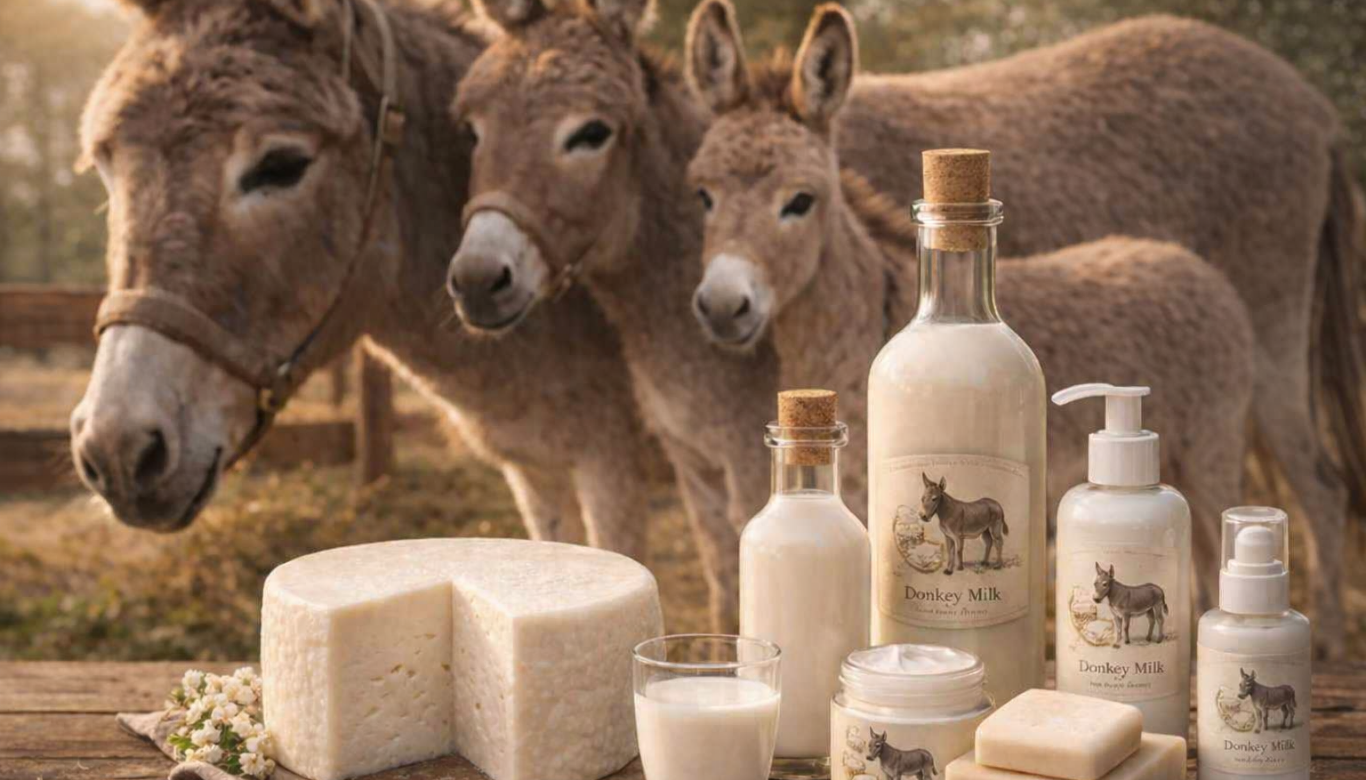 Porque o leite de jumenta, antes mesmo de ser gastronomia, foi cuidado. Pele, inflamações, dermatites. Uma memória antiga que hoje retorna em forma contemporânea, entre cremes, shampoos e tratamentos específicos. Não como folclore, mas como aplicação real.