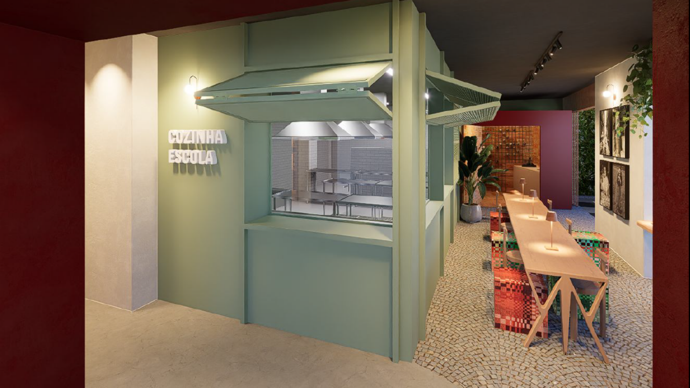 O espaço inclui uma sala de cursos totalmente equipada e uma área-vitrine voltada para a Praça Itália, concebida a partir de um concurso promovido pelo Istituto europeu de Design do Rio, com projeto dos designers Igor Raupp e Raquel Carneiro.