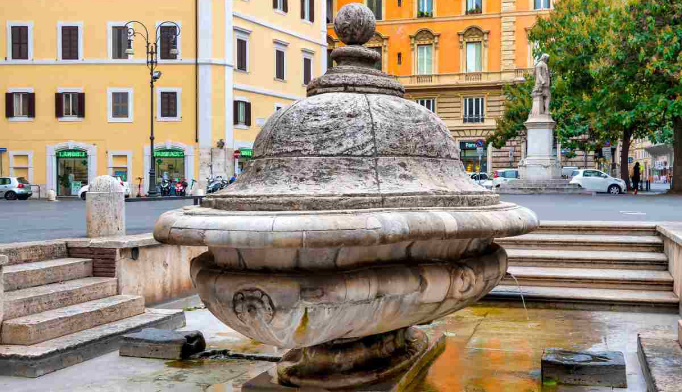 No coração da Roma mais autêntica, a Fontana della Terrina é um daqueles detalhes urbanos que contam a cidade melhor do que muitos monumentos célebres. Hoje ela se encontra na Piazza della Chiesa Nuova, a poucos passos da Igreja de Santa Maria in Vallicella, mas sua história nasce em outro lugar e está intimamente ligada à vida cotidiana da Roma renascentista.