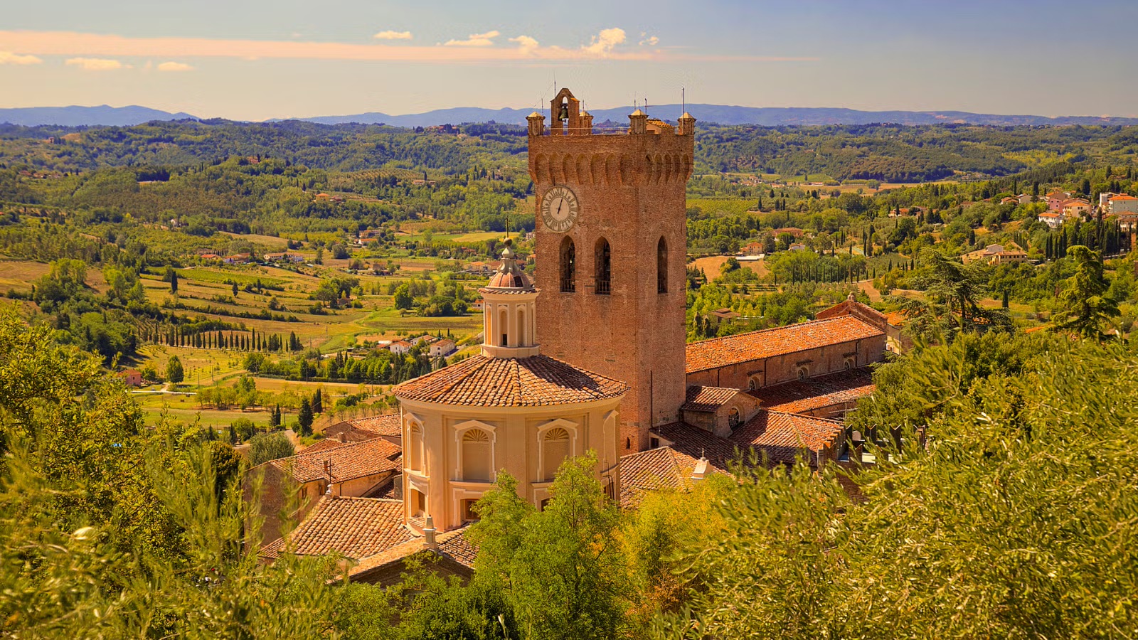 Fora do centro histórico, San Miniato revela uma Toscana ainda mais íntima. O Castello di Montebicchieri, hoje silencioso, mantém viva a força das antigas fortalezas. Balconevisi respira a tradição dos tartufai, enquanto ao redor da Villa Strozzi trilhas serpenteiam por colinas perfeitas para caminhadas. Em Corazzano, a Pieve di San Giovanni preserva a elegância românica do século XII.